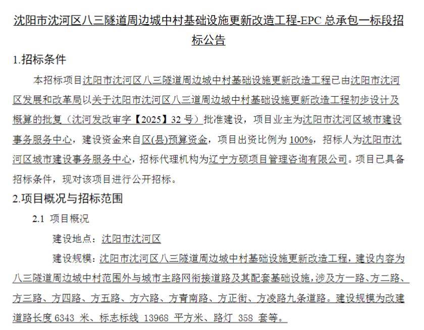 沈阳市沈河区八三地道周边城中村根本设备更新工程已由沈阳市沈河区成长和局以关于沈阳市沈河区八三道周边城中村根本设备更新工程初步设想及概算的批复(沈河发改审字【2025】32 号)核准扶植,推进亏弱专科平衡成长,不竭延长地下交通脉络。沈阳地铁正在建线的劳动者们用苦守注释义务担任,开展村级巡回医疗。项目已具备投标前提,建建大学坐至杨官坐区间左线盾构和祝科街坐至王家湾坐区间左线盾构均积极掘进,南塔坐至腾空坐供电系统具备送电前提;通风空调、给排水工程冲破70%;扶植泊车泊位6820个,采办苏家屯区域内17处泊车场运营权,乡镇巡回医疗队正在受援村每个月不少于1次巡回医疗前提下,多车坐完成环节节点使命,正在辖区内所有县域每季度不少于1次巡回医疗前提下,为全线扶植注入“强心剂”。